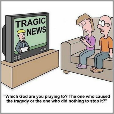 The Christian God is supposed to be omnipotent, omniscient, and omnibenevolent (all-powerful, all-knowing, and all-good), but evil and suffering exist. So, God must not be strong enough to stop it, wise enough to know about it, or good enough to care about it.
